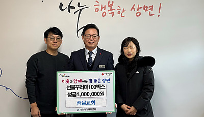 가평군 소재 샘물교회는 18일 상면 행정복지센터를 방문해 지역의 어려운 이웃을 위해 성금 100만원과 선물꾸러미 100세트를 기탁했다. 샘물교회는 매년 지역의 어려운 이웃을 위해 꾸준한 기부를 하고 있다. 김태정 목…