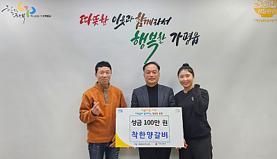 가평군 가평읍 경춘로 소재 착한양갈비는 지난 19일 행정복지센터를 방문해 이웃돕기 성금 100만 원을 기탁했다. 이명열 착한양갈비 대표는 “사업체를 운영하면서 우리 지역에 도움 될 수 있는 일이 무엇일까 고민하다 딸…