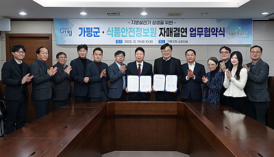공공기관 참여형 상생 협력으로 지역경제 활력 모색 가평군이 식품안전정보원과 손잡고 지역경제 활성화와 지방소비 촉진을 위한 상생 협력에 나선다. 가평군은 지난 19일 가평군청에서 식…