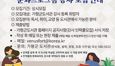 가평군도서관, “2026년 문화프로그램 강사 모집”