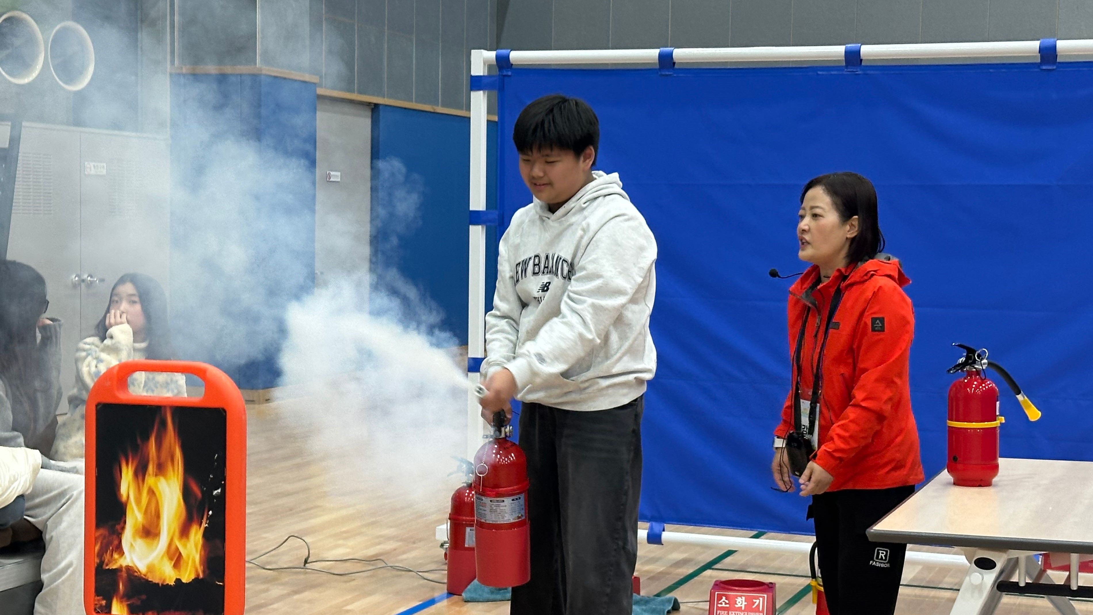 이번 교육에는 청소년 40여 명이 참여해 심폐소생술(CPR), 하임리히법, 소화기 사용법, 가상현실(VR) 기반 지진·화재 대피 체험, 비상대피훈련 등을 조별 실습으로 익혔다.