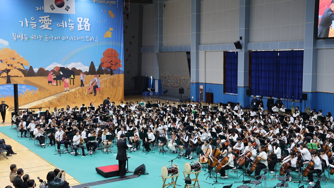 경기도가평교육지원청(교육장 이정임)은 10월 29일(수), 한석봉체육관에서 ‘2025 가평 가을愛 예술路 물별숲 학생 음악제 메가오케스트라’를 성황리에 마쳤다.