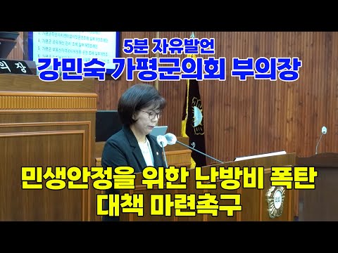 [▲[5분 자유발언, 강민숙의원] 민생안정을 위한 난방비 폭탄 대책 마련 촉구] ○ 제보- 전화 : 031-582-7754, 메일 : 2do_go@naver.com ○ 후원 : 농협 351-1195-0818-23 (예금주:가평팩트-가평을 지키는 사람들의 모임)○ 저작권자 : 가평팩트