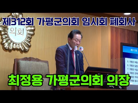 [▲ 제312회 가평군의회 임시회 폐회사(최정용 의장)] ○ 제보- 전화 : 031-582-7754, 메일 : 2do_go@naver.com ○ 후원 : 농협 351-1195-0818-23 (예금주:가평팩트-가평을 지키는 사람들의 모임)○ 저작권자 : 가평팩트