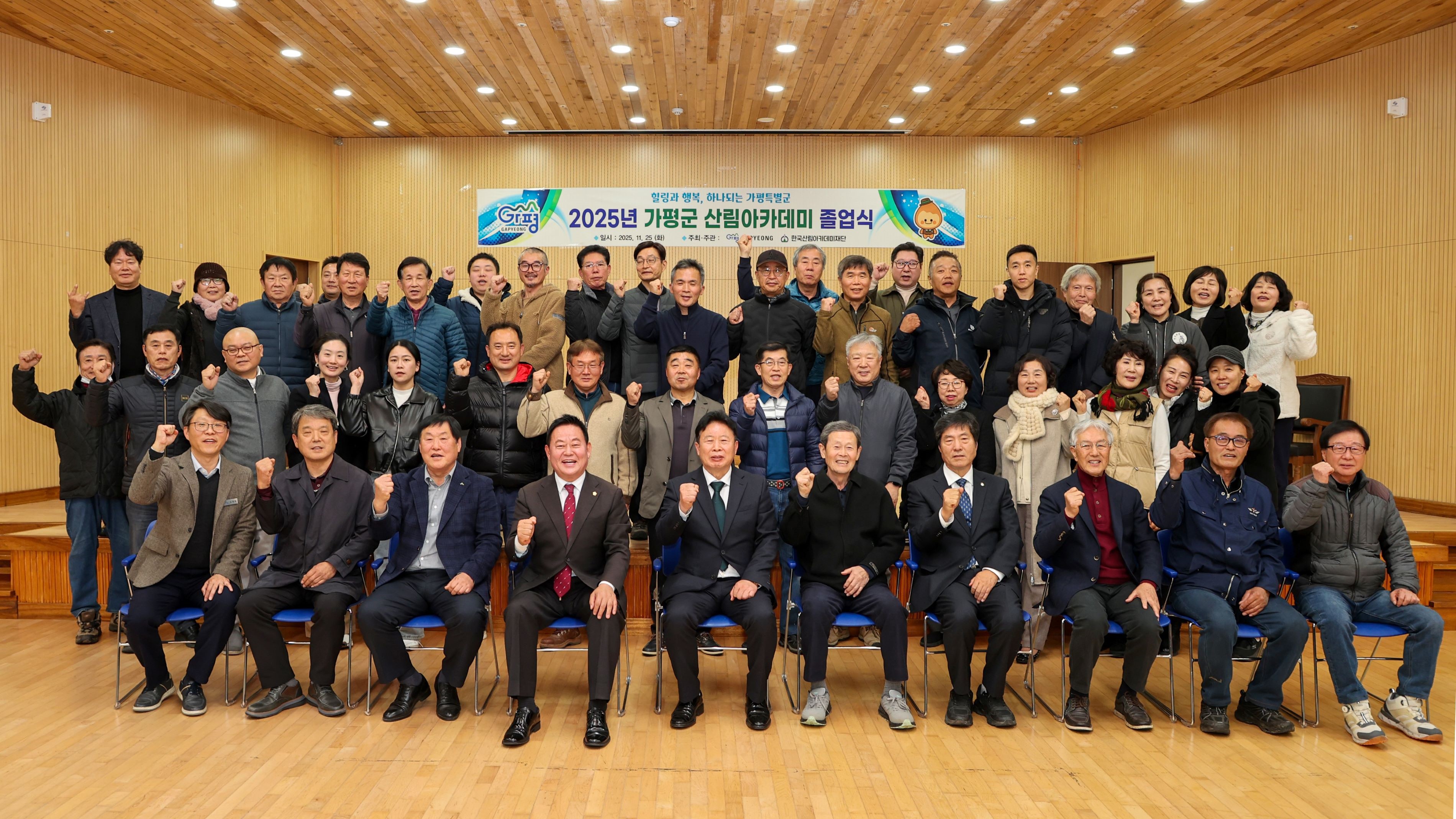 가평군은 25일 산림생태문화체험단지 대강당에서 ‘2025년 가평군 산림아카데미 1기 졸업식’을 열고 38명의 첫 산림 인재를 배출했다.