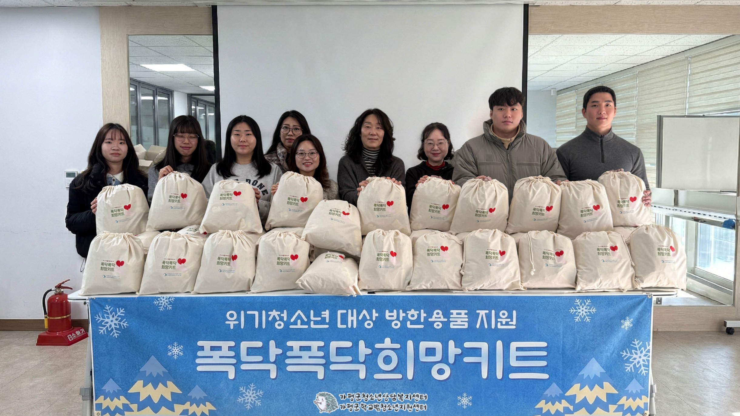 가평군청소년상담복지센터가 겨울방학을 맞아 최근 방한용품으로 구성된 폭닥폭닥 희망 키트를 제작해 관내 위기 청소년들에게 전달했다.