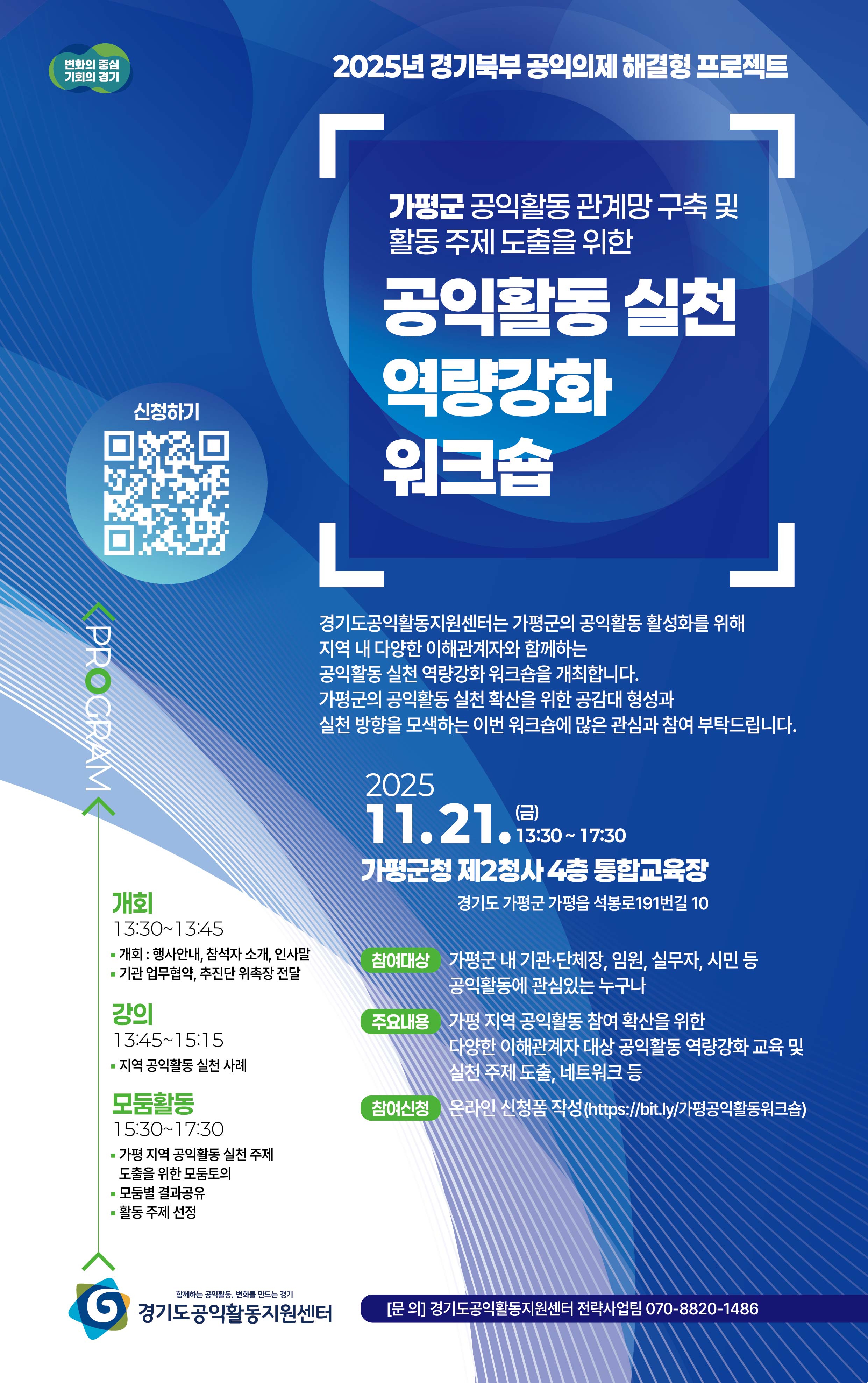 문의 : 경기도공익활동지원센터 전략사업팀 ☎ 070-8820-1486