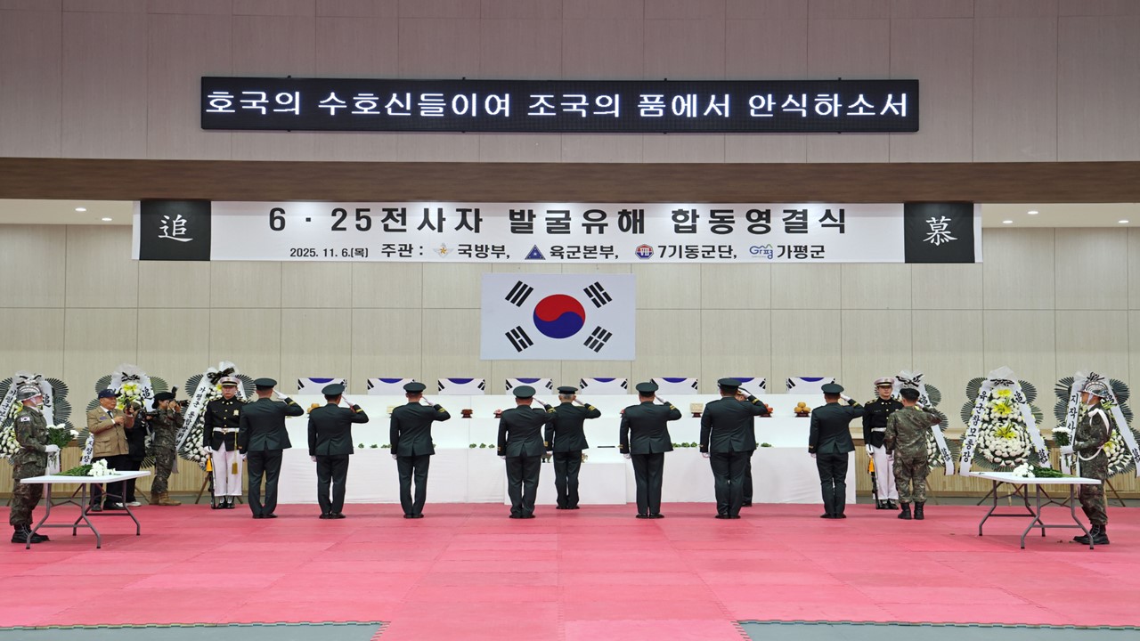육군 제7기동군단은 11월 6일, 가평군 수도기계화보병사단 다목적체육관에서「2025년 6ㆍ25전사자 발굴유해 합동 영결식」을 엄수했다고 전했다.