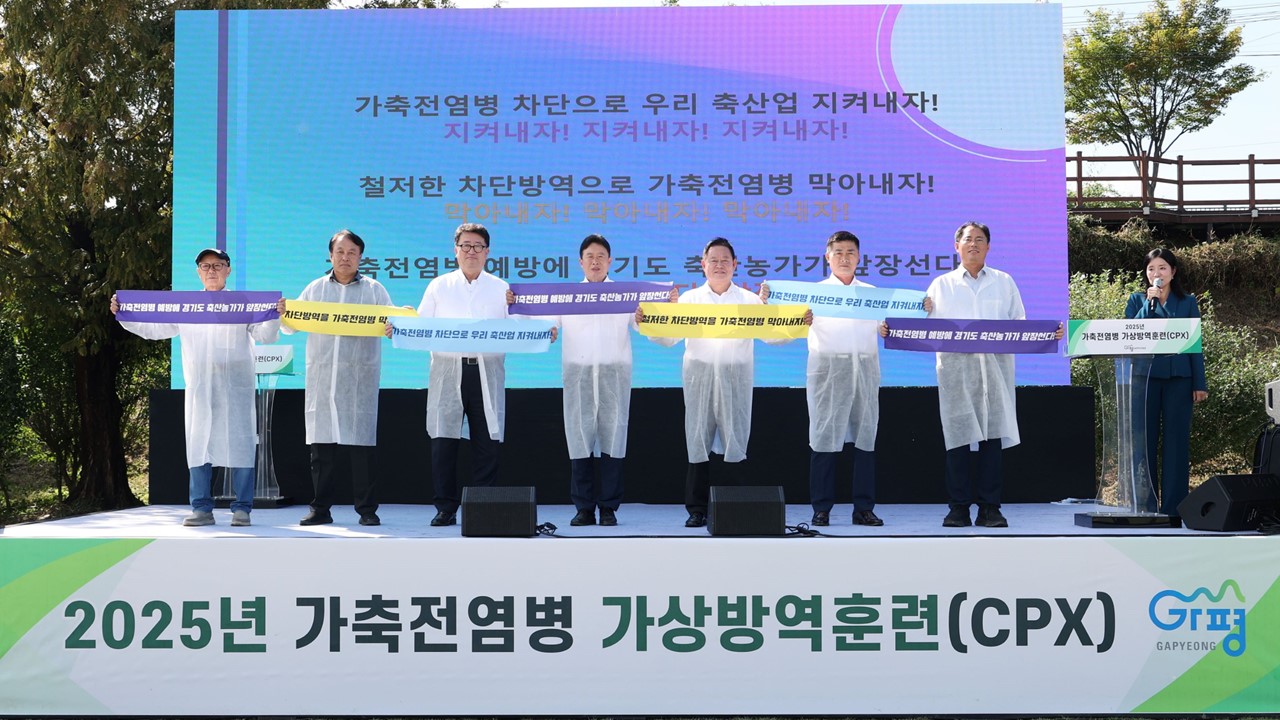 가평군은 25일 자라섬 주차장에서 ‘2025년 가축전염병 가상방역훈련(CPX)’을 실시했다고 밝혔다. 이번 훈련은 가축전염병 발생 상황을 가정해 의심축 신고부터 긴급 방역조치까지 일련의 과정을 실제 상황처럼 시연하며 방역의식을 높였다.