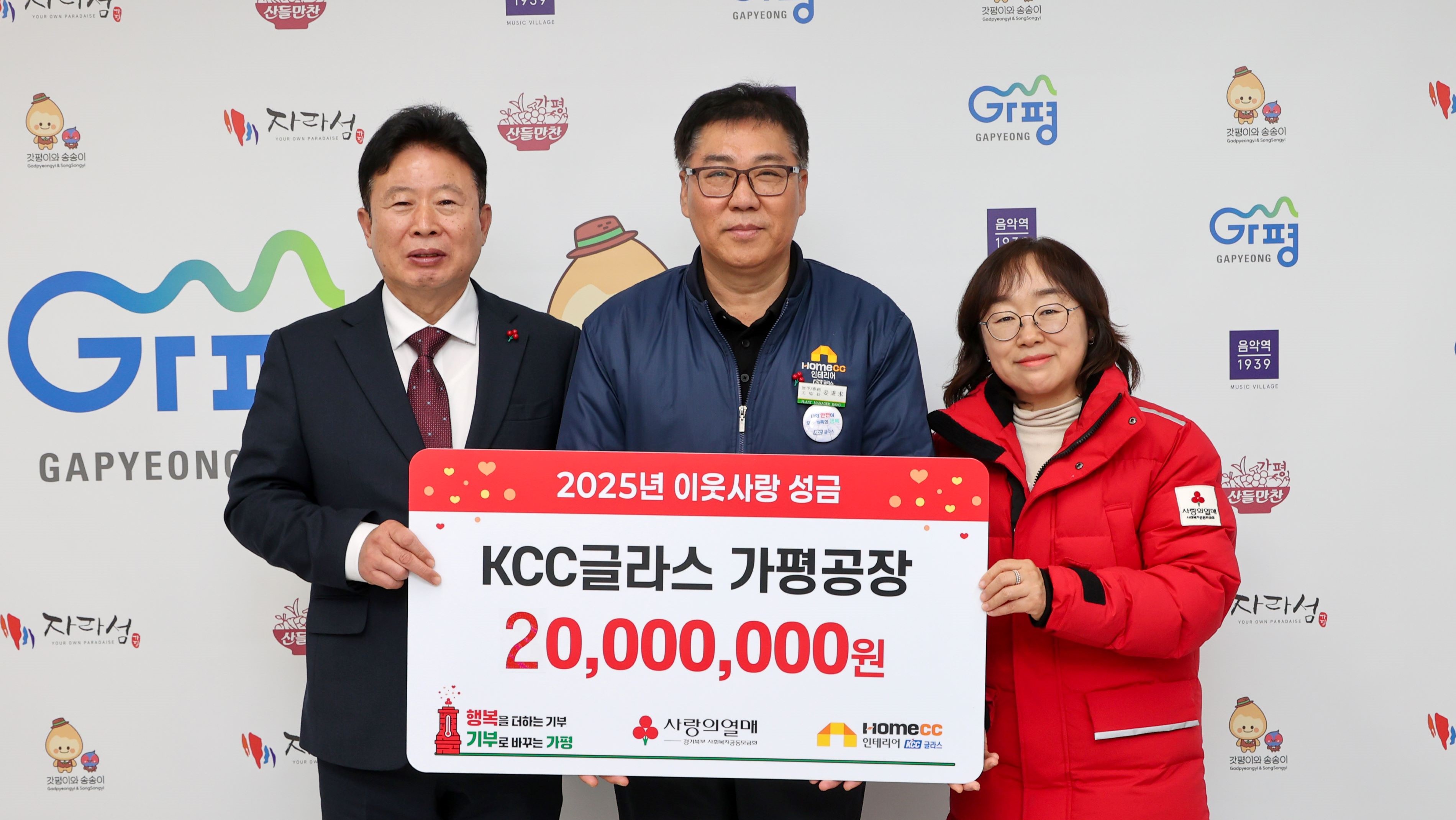 KCC글라스 가평공장은 29일 가평군청에서 이웃돕기 성금 2천만 원을 가평군에 기탁하고 전달식을 진행했다.