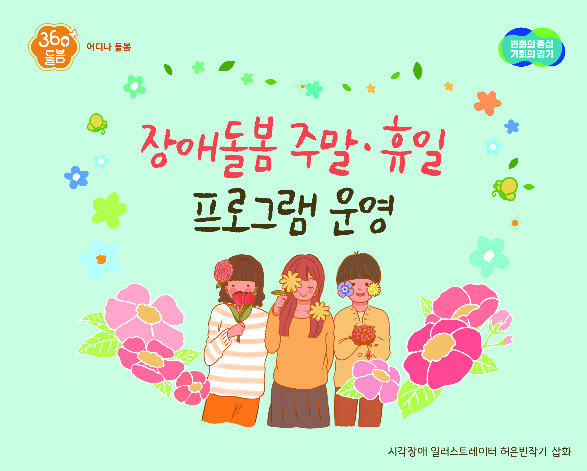 360도 어디나돌봄 「장애돌봄 야간휴일 프로그램 운영」사업은 경기도 대표 복지정책으로, 수요자 중심의 맞춤형 돌봄 서비스를 제공하기 위해 추진되는 사업이다. 복지시설 이용 시간 외에도 주말과 공휴일까지 돌봄 지원을 확대해 돌봄 사각지대를 해소하고, 장애인의 안정적인 일상생활을 지원한다. 특히 안전한 돌봄 체계 구축을 통해 보호자의 돌봄 부담을 완화하는 것을 주요 목표로 하며, 다양한 여가·체험 활동을 통해 장애인의 사회참여를 확대하고 가족의 돌봄 부담 완화에 기여하고자 한다.
