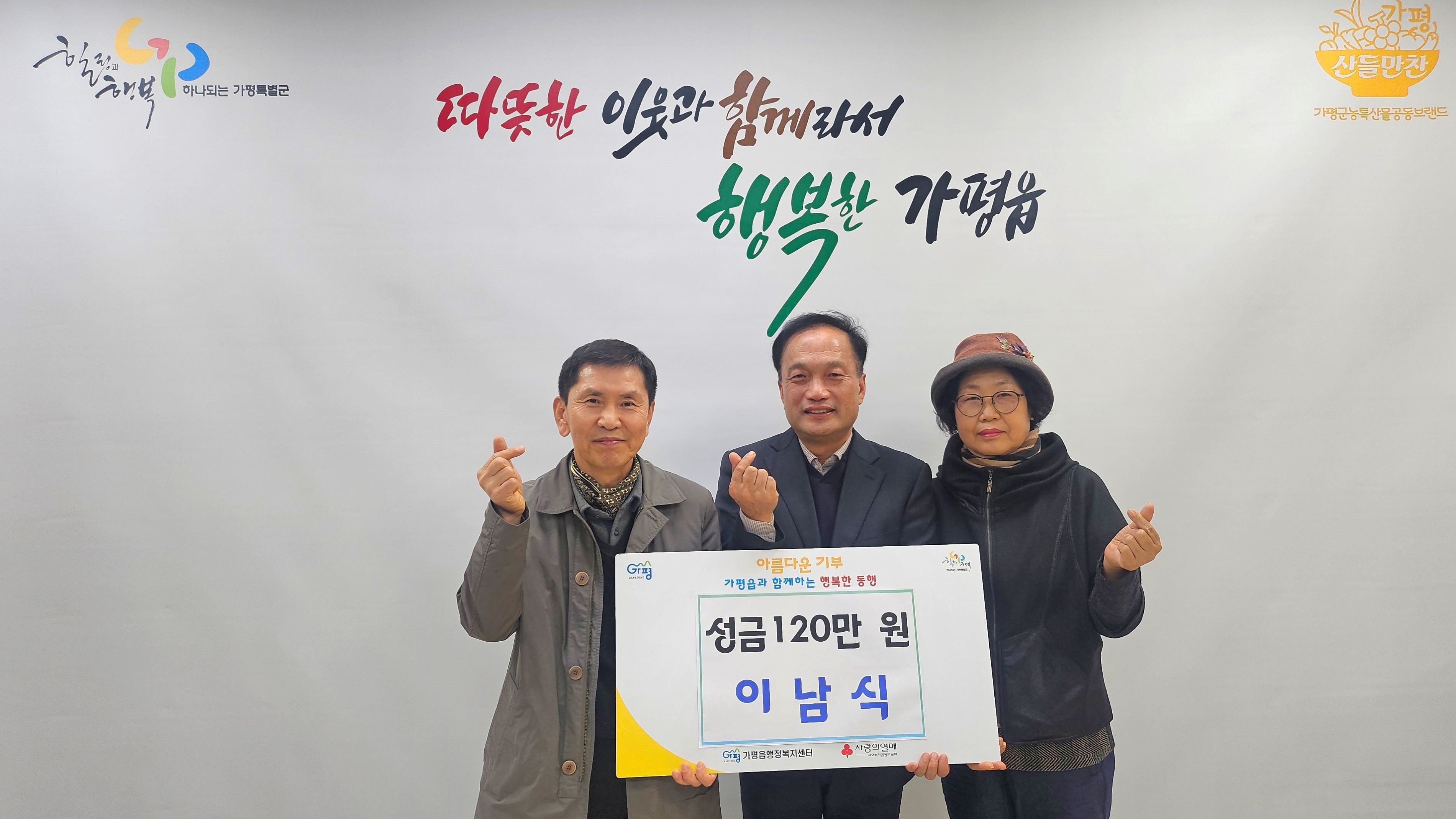 가평읍 이남식 주민, 이웃돕기 성금 120만 원 기탁