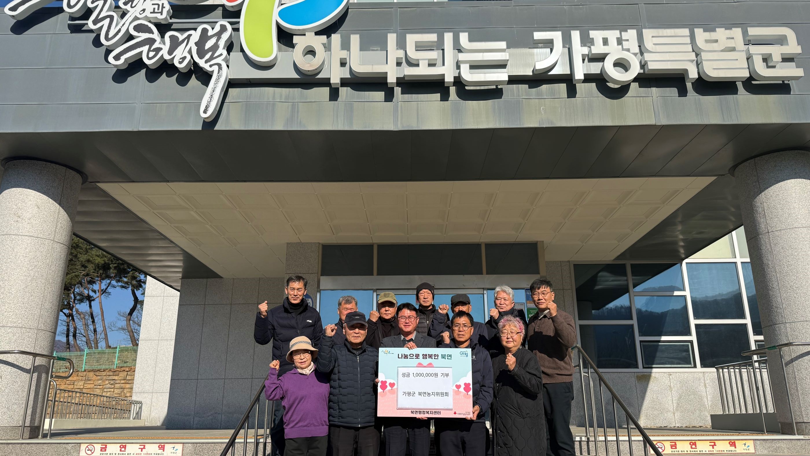 가평군 북면 농지심의위원회 위원 일동은 최근 행정복지센터를 방문해 관내 어려운 이웃들을 위해 현금 100만원을 기탁했다.