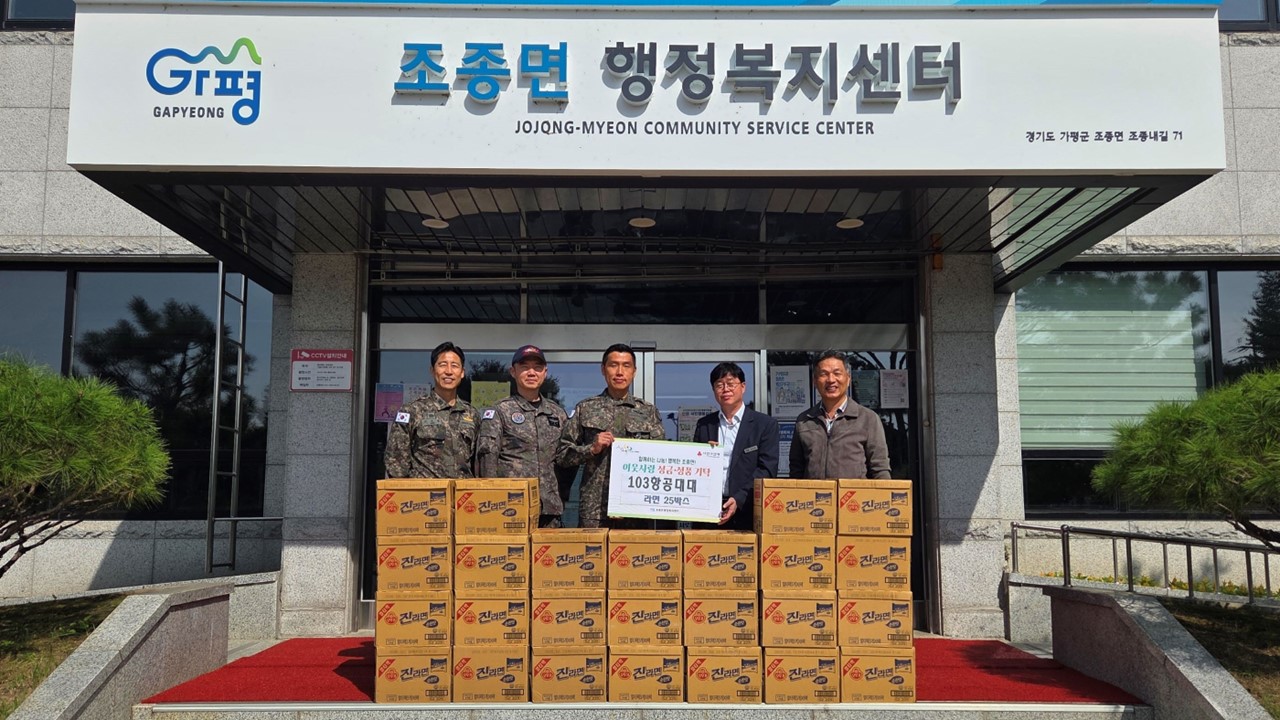 가평군 조종면은 최근 103항공대대에서 추석 명절을 맞아 라면 25박스를 기탁하며 취약계층을 위한 나눔을 실천했다고 밝혔다.