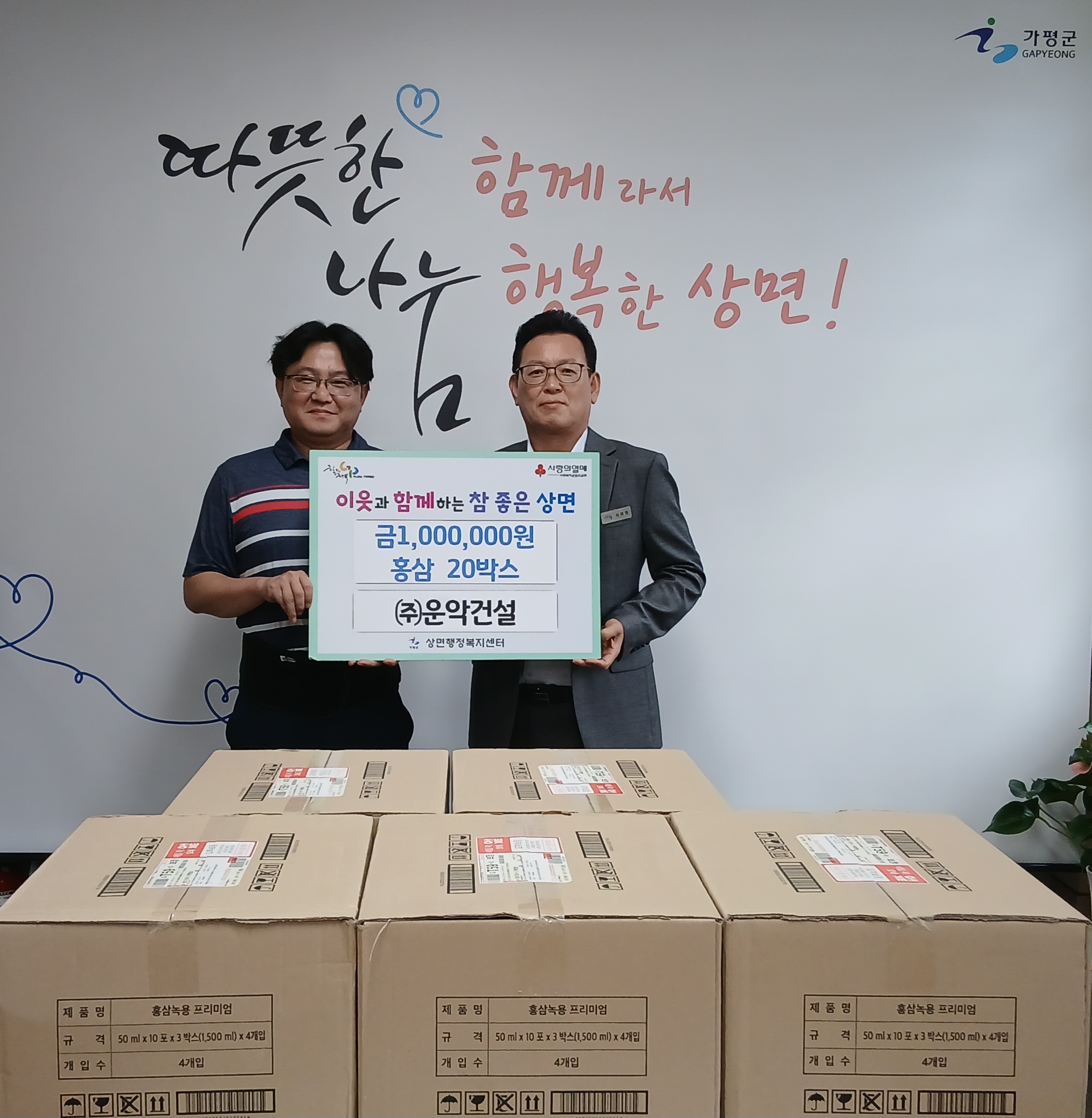 가평군 상면 소재 건설업체인 운악건설은 최근 상면행정복지센터를 찾아 홍삼 20박스와 성금 100만 원을 전달했다.