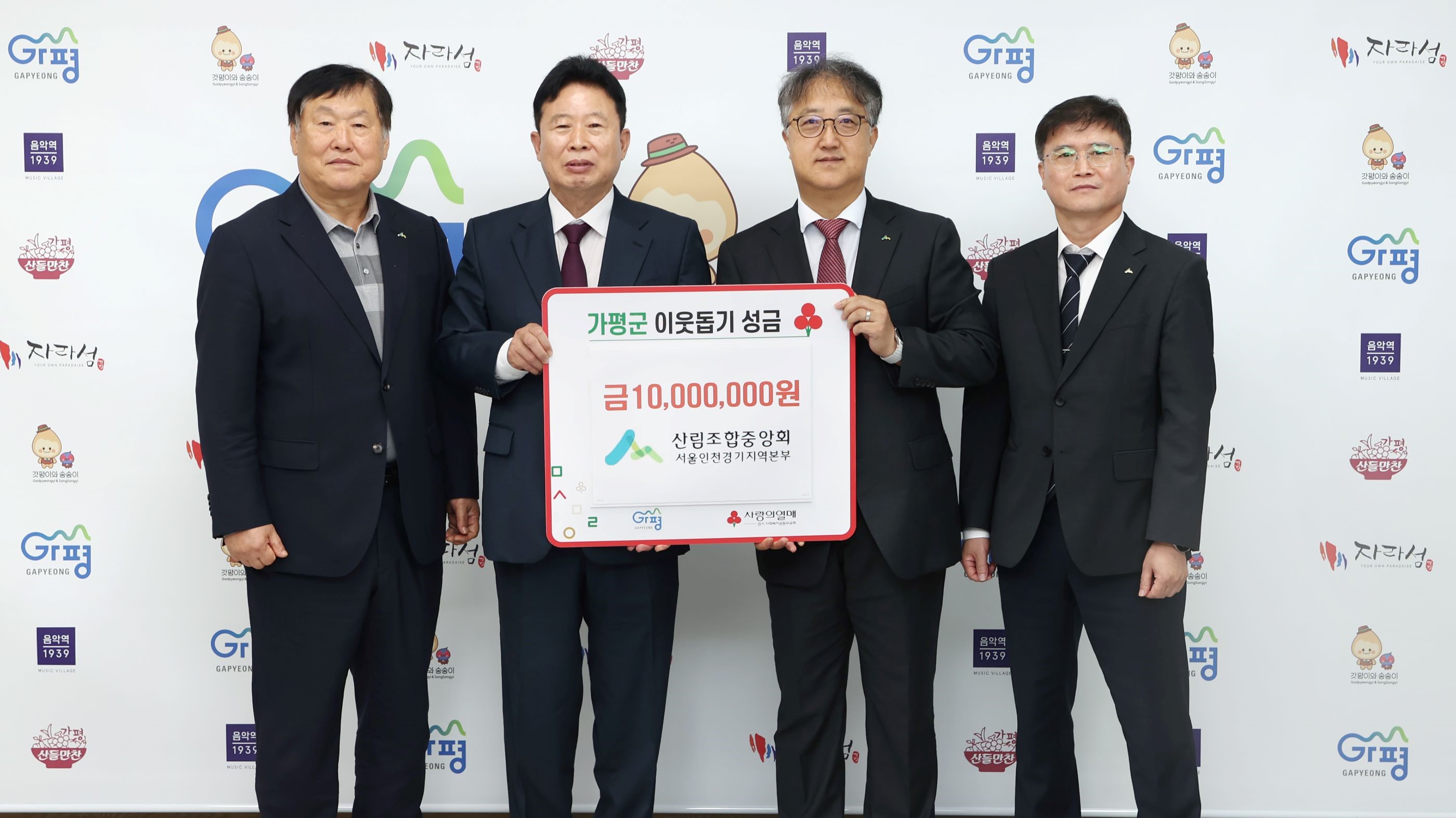 산림조합중앙회 서울인천경기지역본부는 13일 가평군청을 방문해 지역의 어려운 이웃을 돕기 위한 성금 1천만 원을 기탁했다.