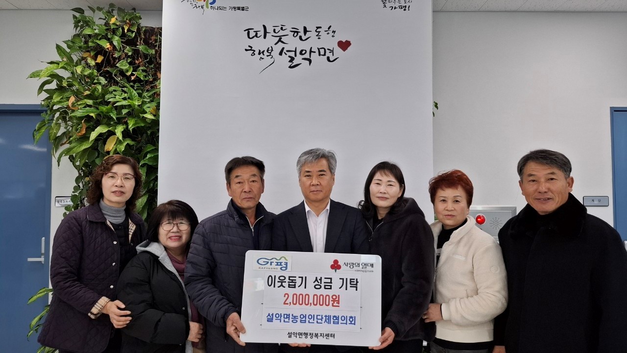 가평군 설악면농업인단체협의회가 연말을 맞아 관내 취약계층을 위해 성금 200만 원을 설악면에 기탁했다.