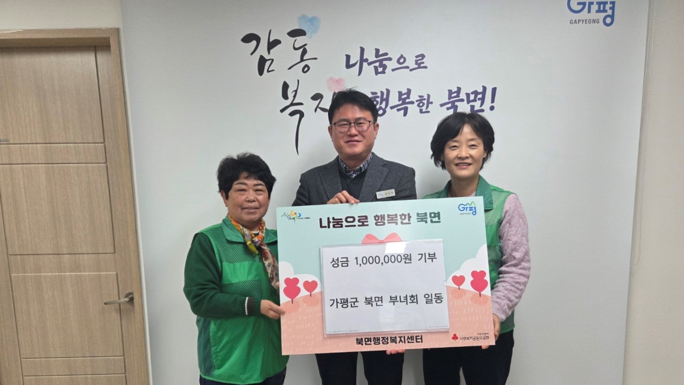 가평군 북면 부녀회는 최근 북면 행정복지센터를 방문해 어려운 이웃들을 위해 현금 100만원을 기탁했다.