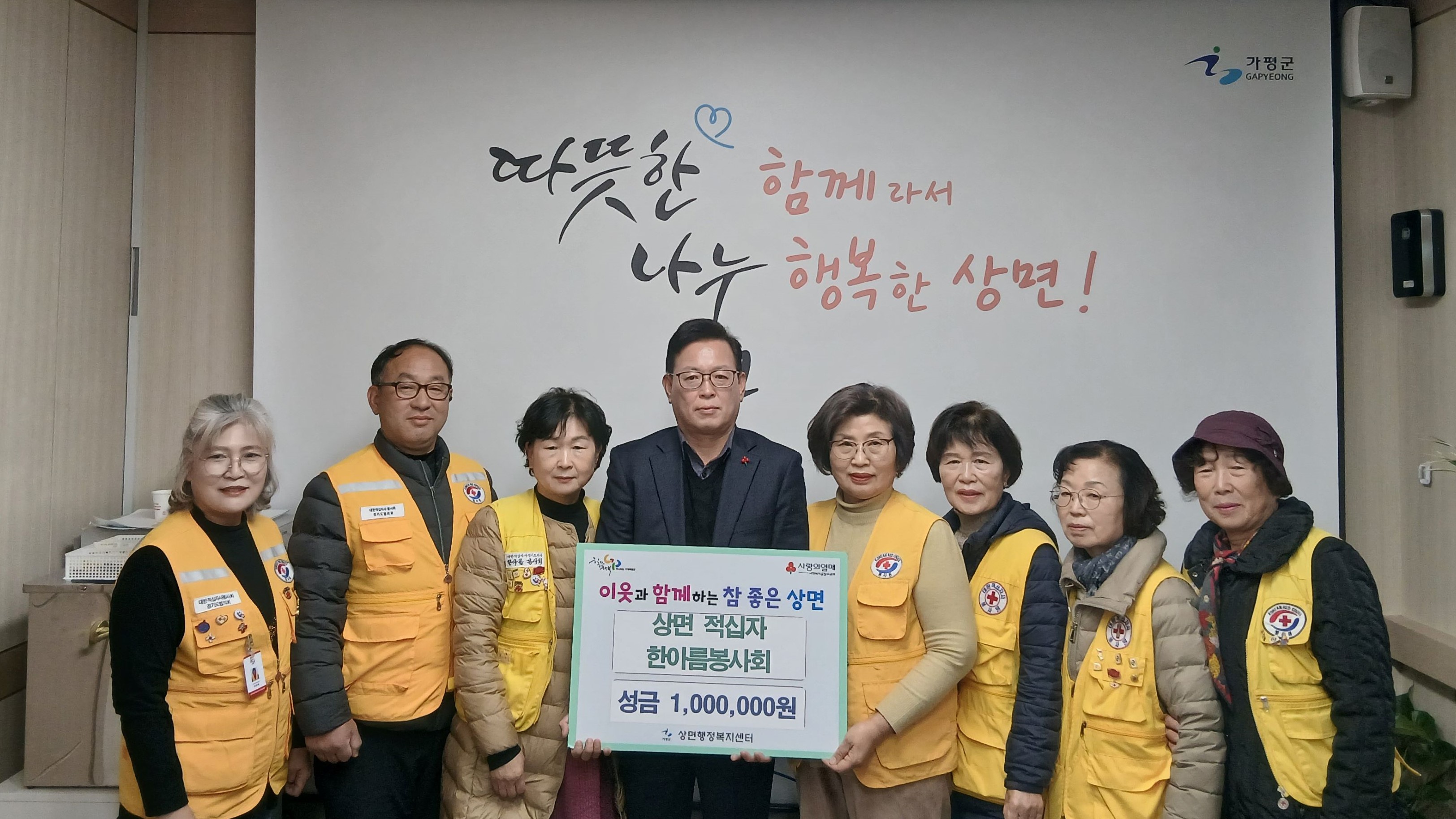 대한적십자사 상면 한아름봉사회는 16일 행정복지센터를 방문해 성금 100만원을 기탁했다.