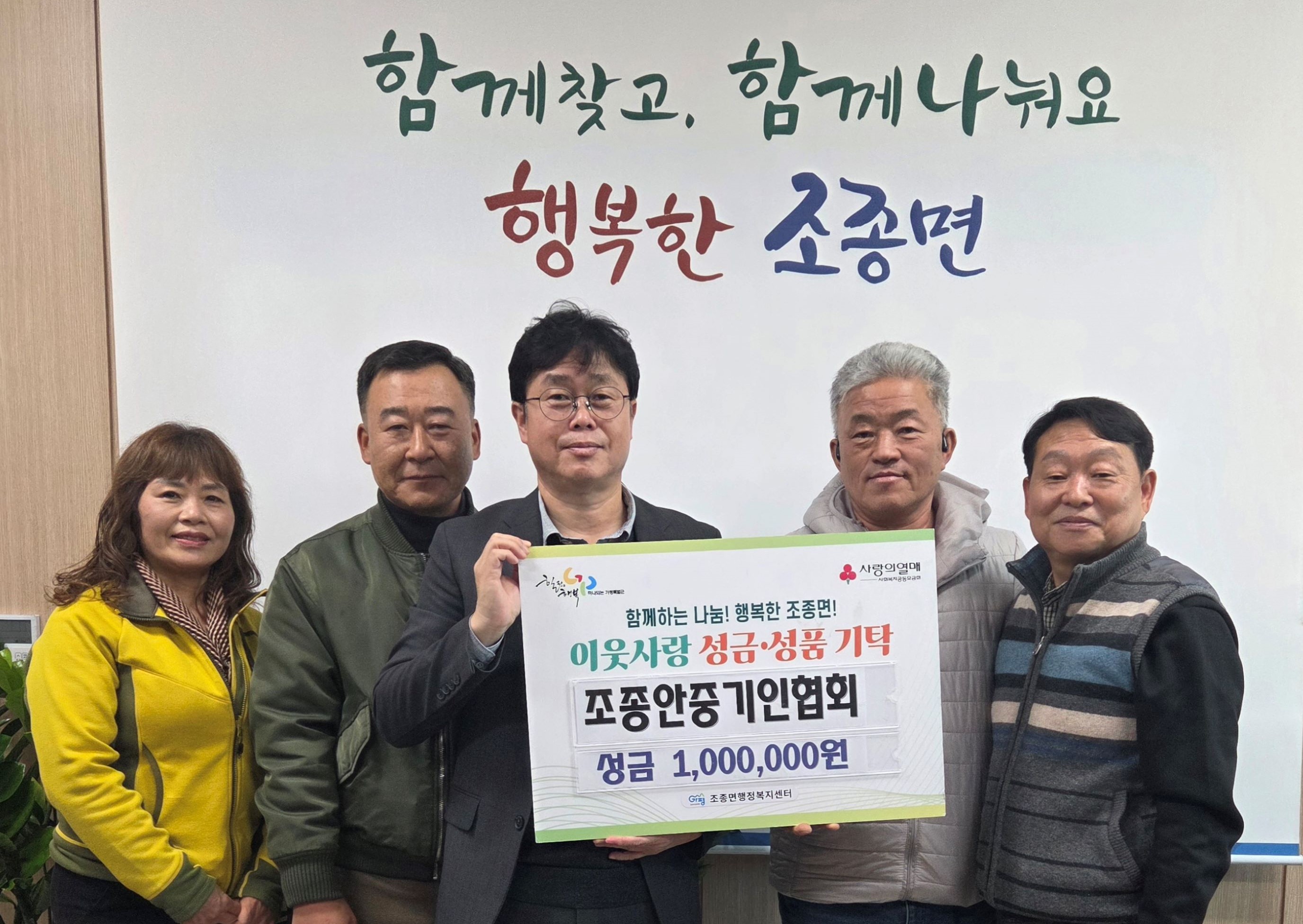 가평 조종안중기인협회는 18일 조종면 행정복지센터를 방문해 지역 내 어려운 이웃을 돕기 위한 성금 100만원을 기탁했다.