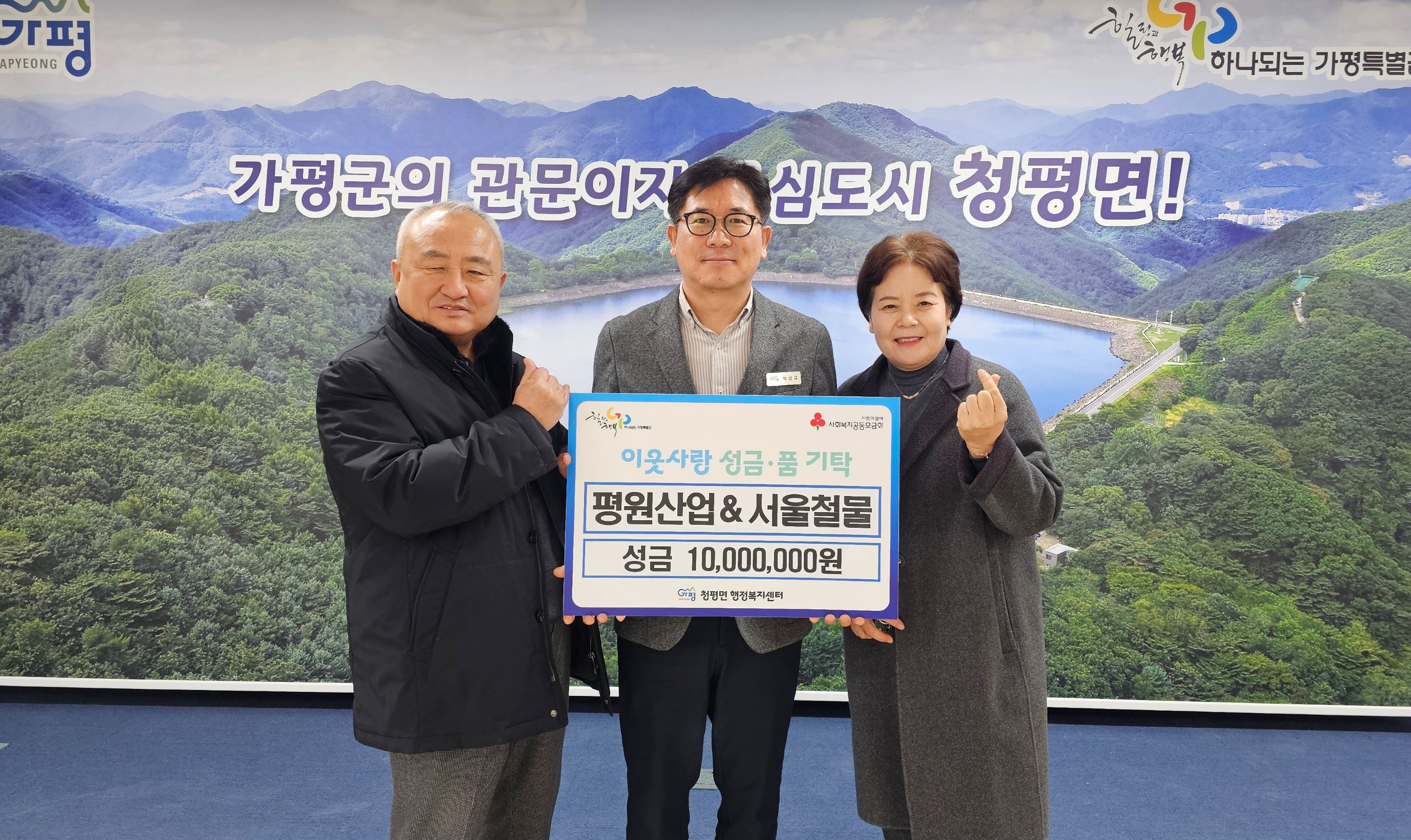 가평군에 소재하는 평원산업과 서울철물은 최근 지역 내 어려운 이웃을 위한 성금 1,000만 원을 청평면 행정복지센터에 기탁하며 따뜻한 나눔을 실천했다.