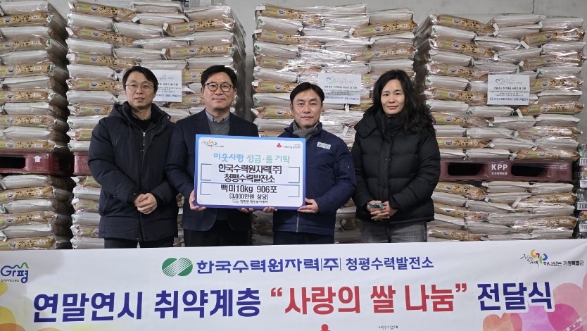 한국수력원자력청평수력발전소가 설 명절을 앞두고 청평면 취약계층을 위한 사랑의 쌀 나눔을 실천했다.