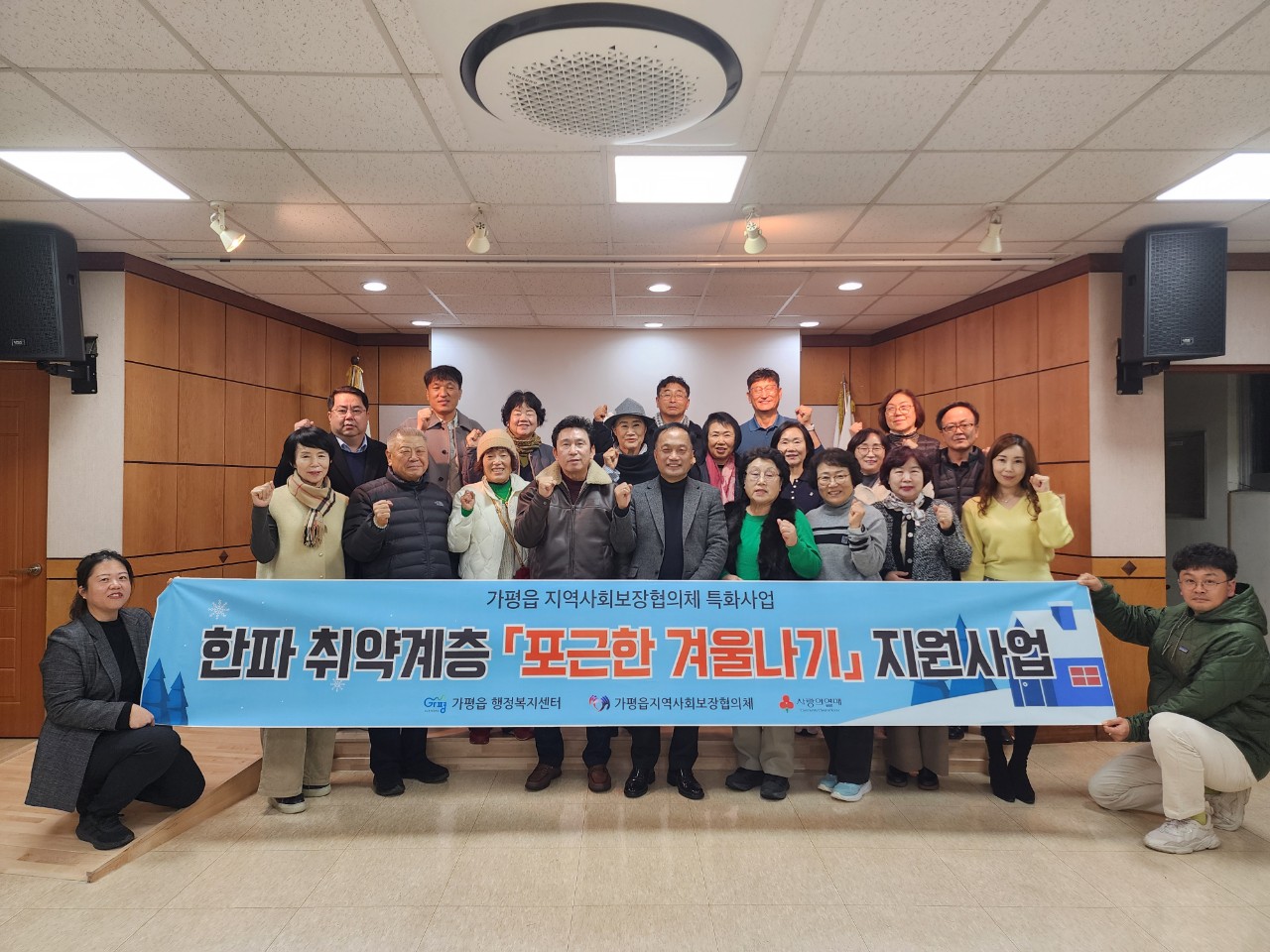 가평군 가평읍 지역사회보장협의체(이하 지사협)는 지난 27일 겨울철 한파로 어려움을 겪고 있는 취약계층 지원을 위한 ‘포근한 겨울나기’ 사업을 실시했다.