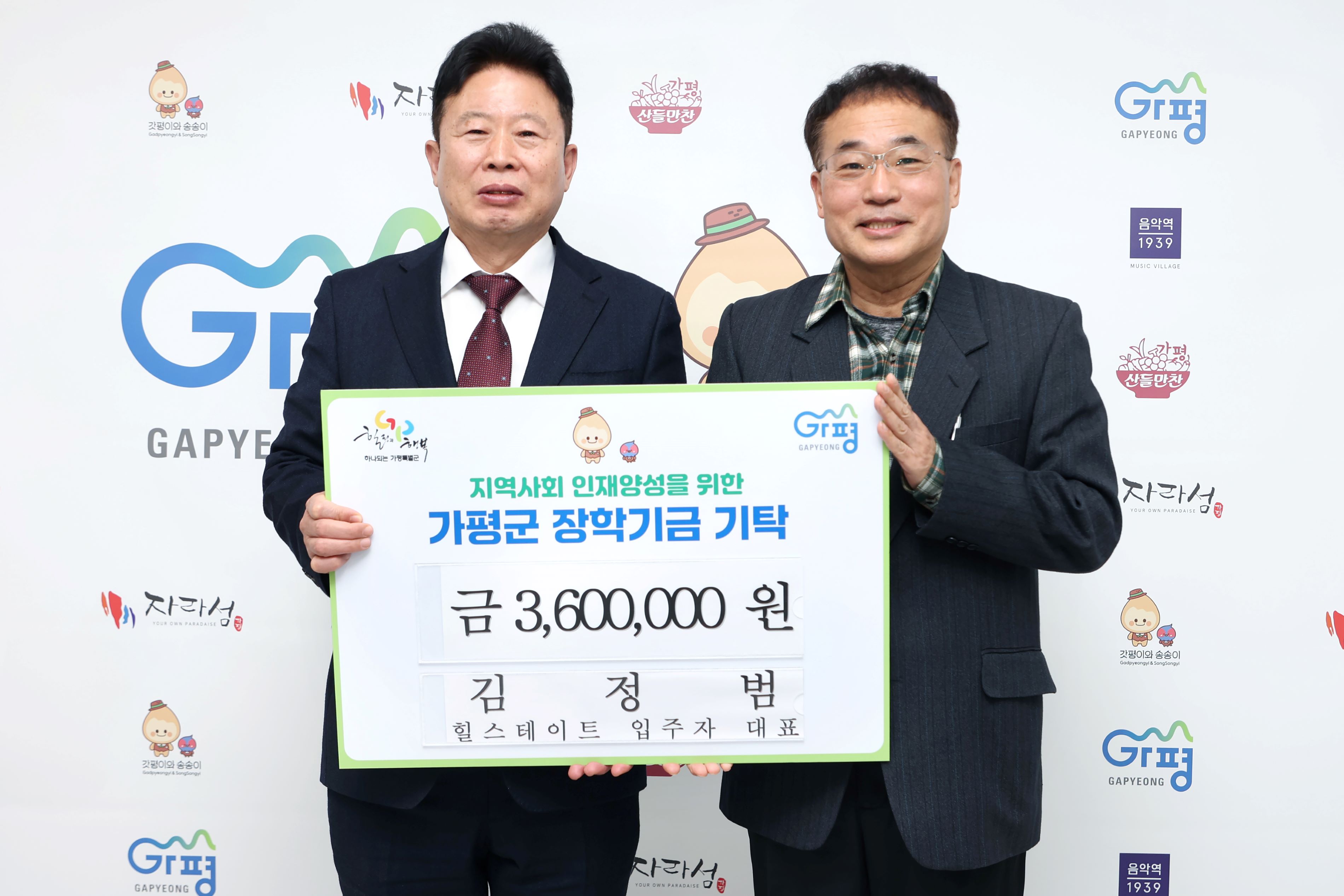 김정범 입주자 대표, 가평군에 360만원 장학금 기탁