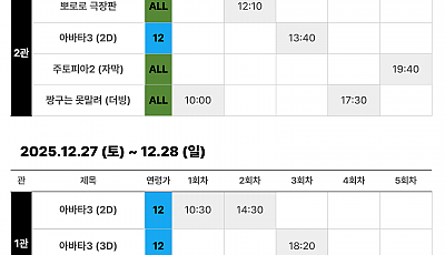 작은영화관 1939시네마, 조종시네마영화관에서는 12월 17 수요일, 영화 '아바타: 불과 재'를 개봉한다. 이 작품은 2022년 영화 '아바타: 물의 길'의 속편으로,전작과 마찬가지로 제임스 카메론이 감독을 맡았다…
