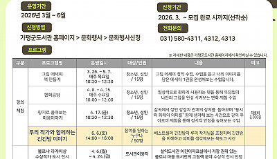 작가 북토크~체험‧전시까지…지역 연계 ‘독서 핫스팟’ 조성 가평 설악도서관이 제62회 도서관 주간(4월 12~18일)과 도서관의 날(4월 12일)을 맞아 다양한 독서문화 행사를 운영한다. 이번 행사는 도서관의 가치와…