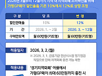 기존 10%에서 2% 추가… 60만원 충전시 7만2천원 혜택 가평군은 오는 3월부터 지역화폐인 ‘가평GP페이’ 인센티브를 기존 10%에서 12%로 상향한다고 밝혔다. 다만 금융기관 시스템 점검으로 인해 충전은 3월 2일 0시부터 가능하다. 가평GP페이는 인센티브 상향에 따라 60만 원을 충전할 경우 기존에는 10%가 적용돼 총 66만 원을 사용할 수 있었지…