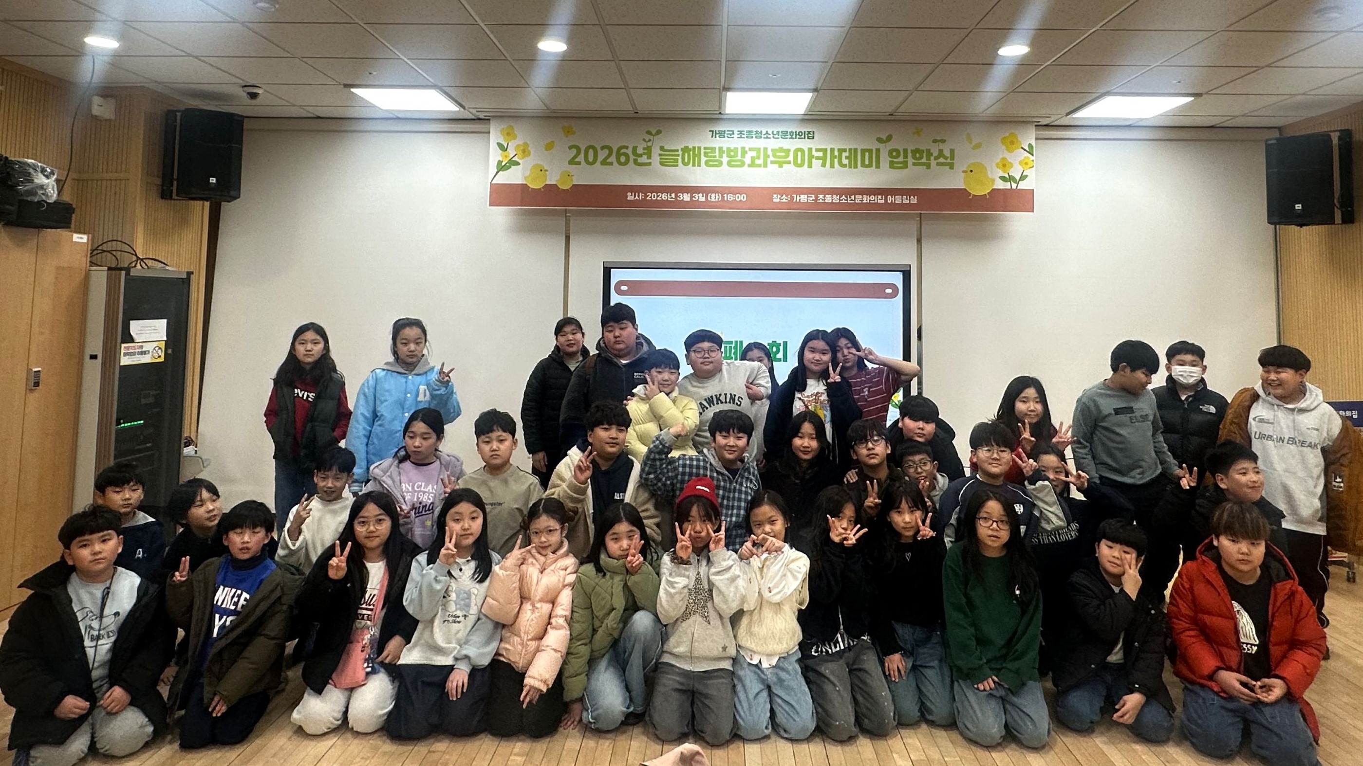 가평군 조종청소년문화의집 늘해랑방과후아카데미가 3일 초등학생 40명이 참가한 가운데 입학식을 갖고 새롭게 출발했다.
