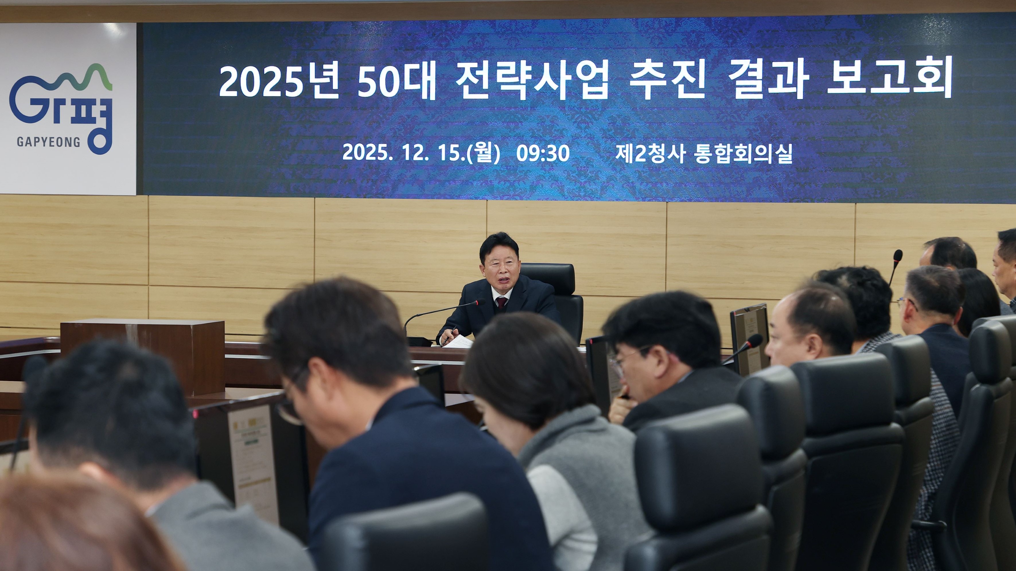 가평군은 15일 ‘2025년 50대 전략사업 추진 결과 보고회’를 열고, 올해 추진한 주요 현안과 역점·공략사업의 성과를 종합적으로 점검했다.