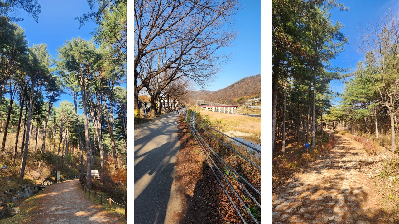 세 번째 북면 목동천 산책길은 목동천 뚝방을 따라 걷는 코스로, 사계절 변화가 고스란히 느껴진다. 흐르는 물과 주변 산세가 어우러져 계절마다 다른 풍경을 선사한다.