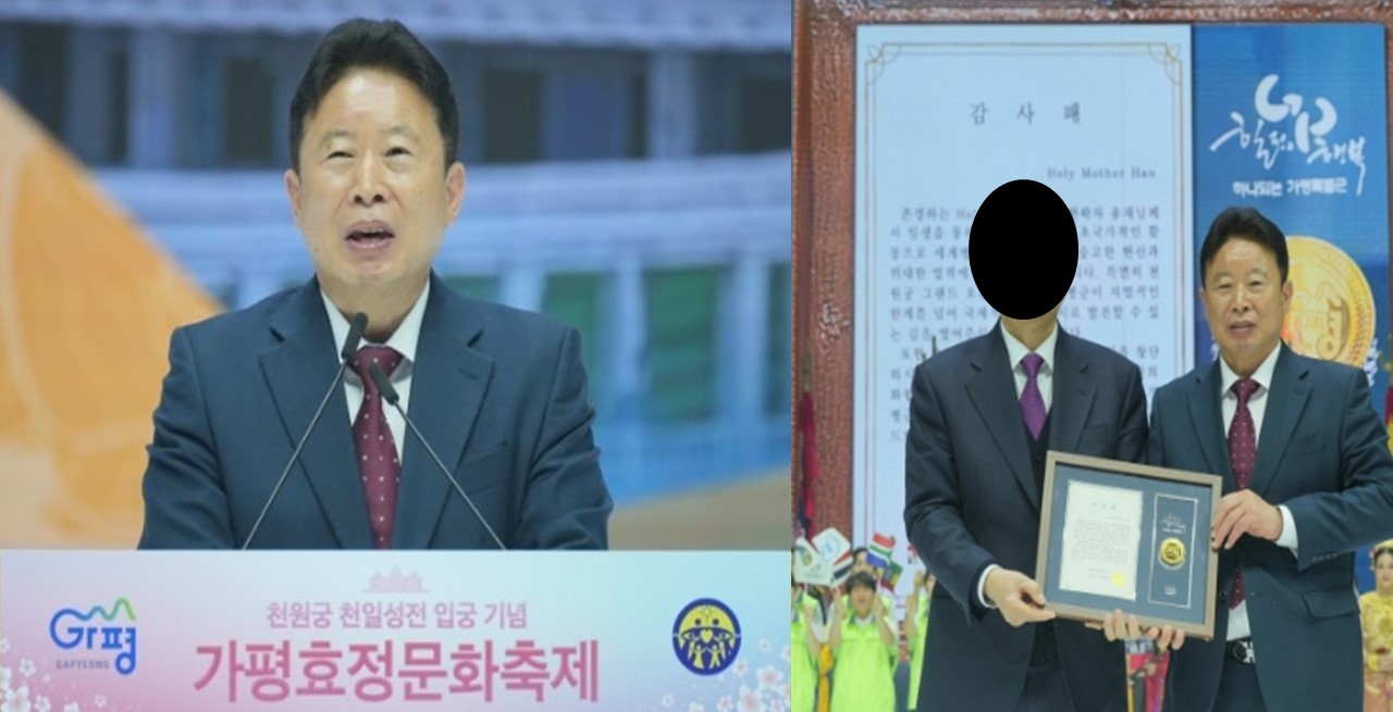 또한 서태원 군수는 한학자 총재에게 감사패를 전달하기도 했다.
