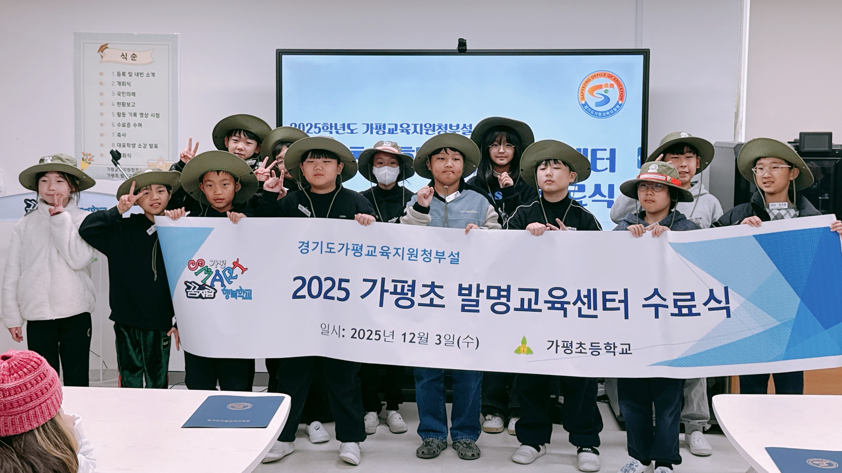 가평초발명교육센터 발명기초반 학생들은 한 해 동안 기초 발명 기법 이해, 기업가 정신 기르기, 3D펜과 목공 등의 메이커 활동, SW·AI 기초 활동, AI 로봇 등 다양한 발명 중심 프로그램을 마치고 수료했다.