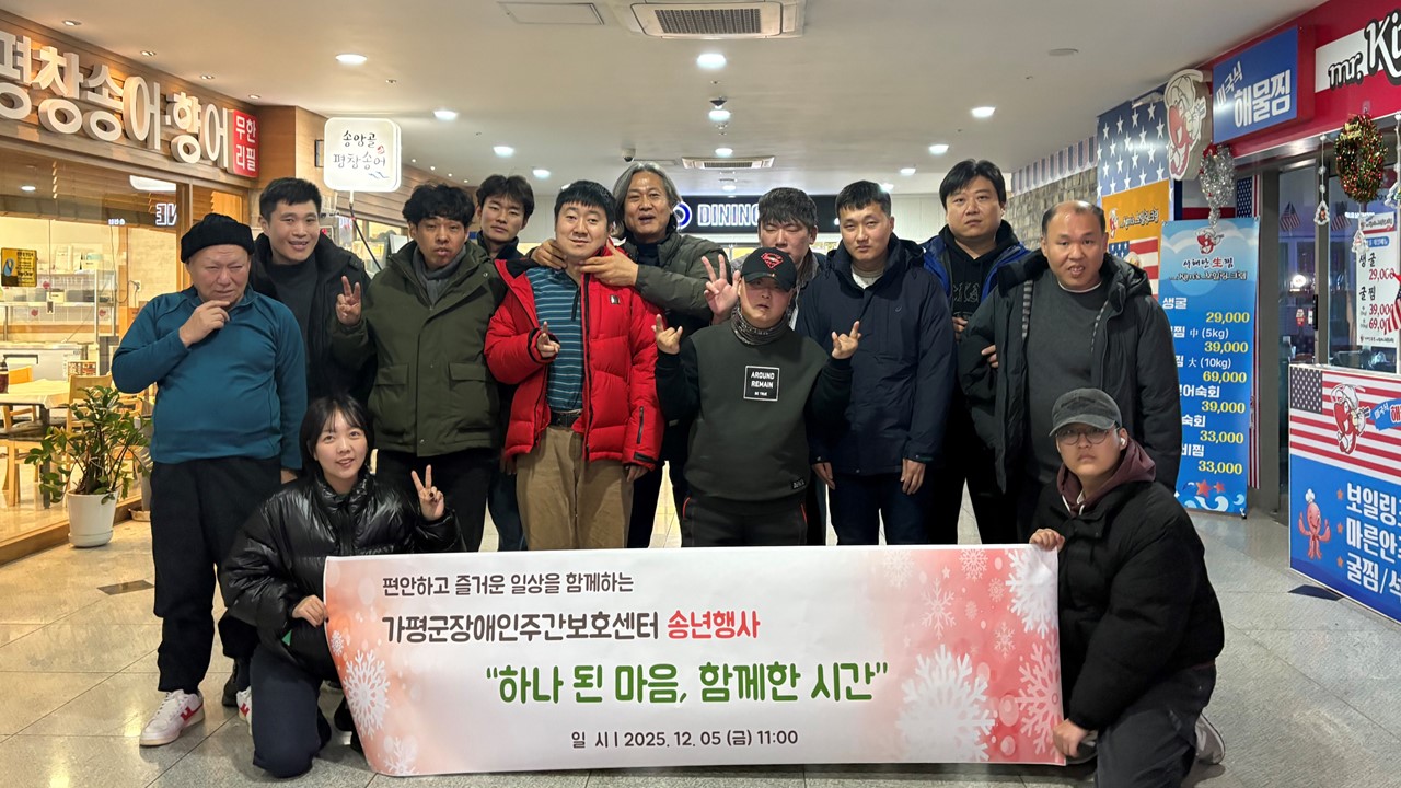 가평군장애인주간보호센터(관장 김명주)는 지난 12월 5일(금) 이용자 및 종사자 와 함께 춘천 다이닝원에서 송년행사를 진행했다.