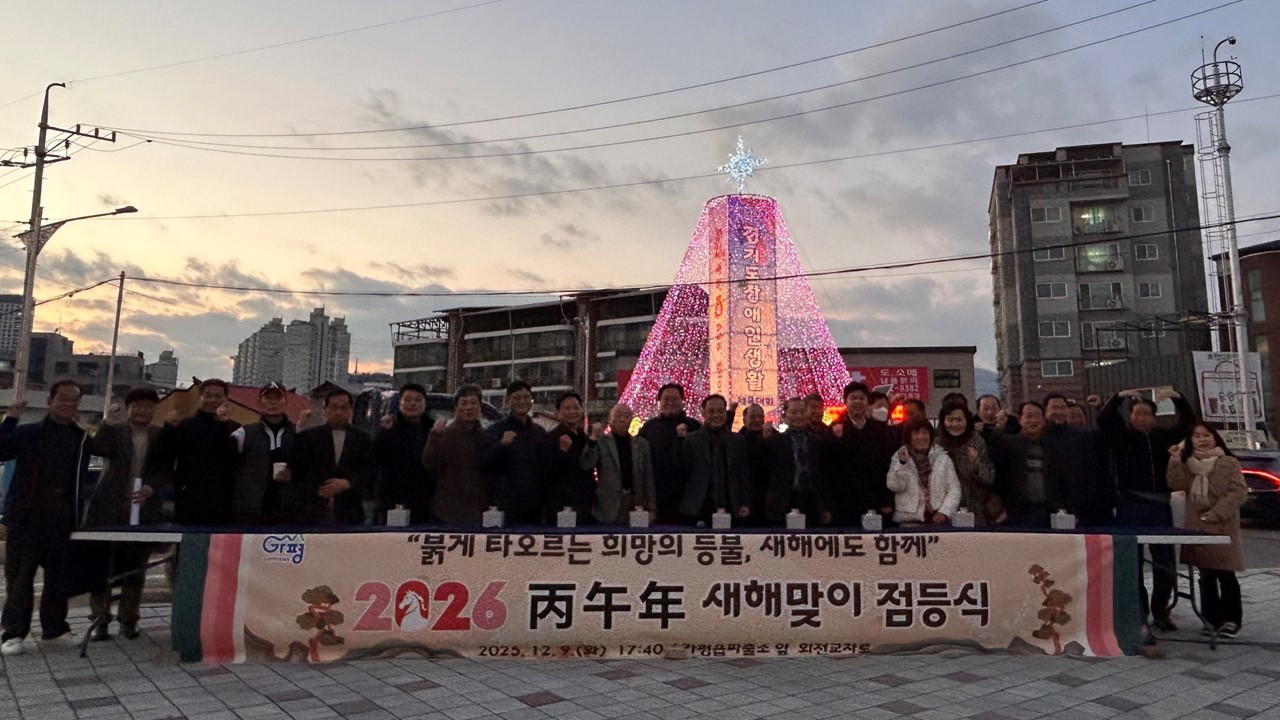 가평군 가평읍은 지난 9일 가평읍파출소 앞 회전교차로에서 ‘2026년 가평읍 새해맞이 홍보탑 점등식을 개최했다. 이날 행사에는 가평읍장을 비롯해 군의원, 가평읍 6개 단체장, 32개리 이장 등 40여 명이 참석해 새해를 밝히는 점등식에 함께했다.
