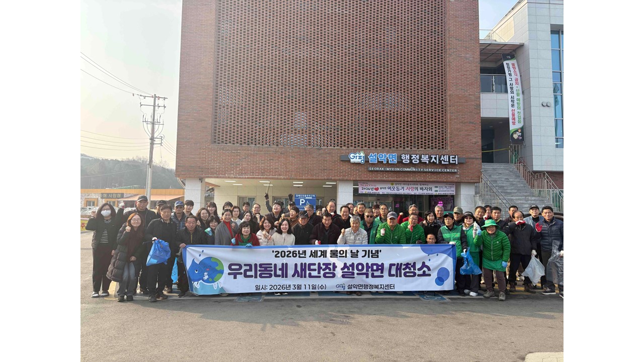 설악면은 11일 ‘세계 물의 날(3월 22일)’을 앞두고 물과 환경의 소중함을 되새기며 쾌적한 생활환경을 조성하기 위한 ‘우리동네 새단장 봄맞이 대청소’를 실시했다고 밝혔다.