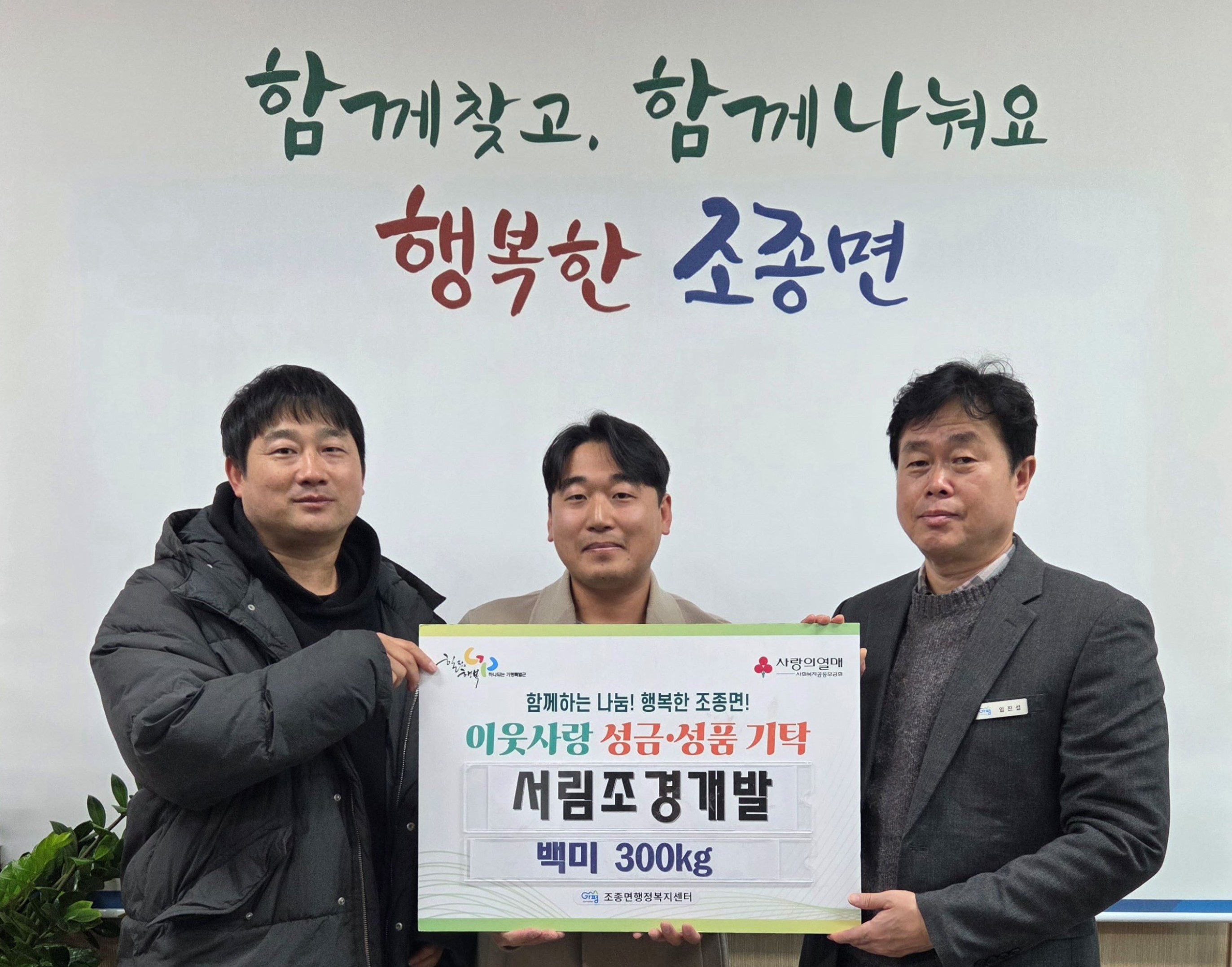 가평군 소재 서림조경개발은 지난 9일 조종면 행정복지센터를 방문해 쌀 300kg를 기탁했다.